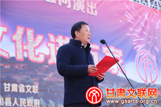 中共西和县委书记曹勇致欢迎辞。他简要介绍了西和的人文历史和近年来经济社会特别是扶贫事业发展情况,对省政协等单位的真心帮扶、精准施策表示衷心感谢,向省文联及艺术家来到西和慰问表示热烈欢迎!