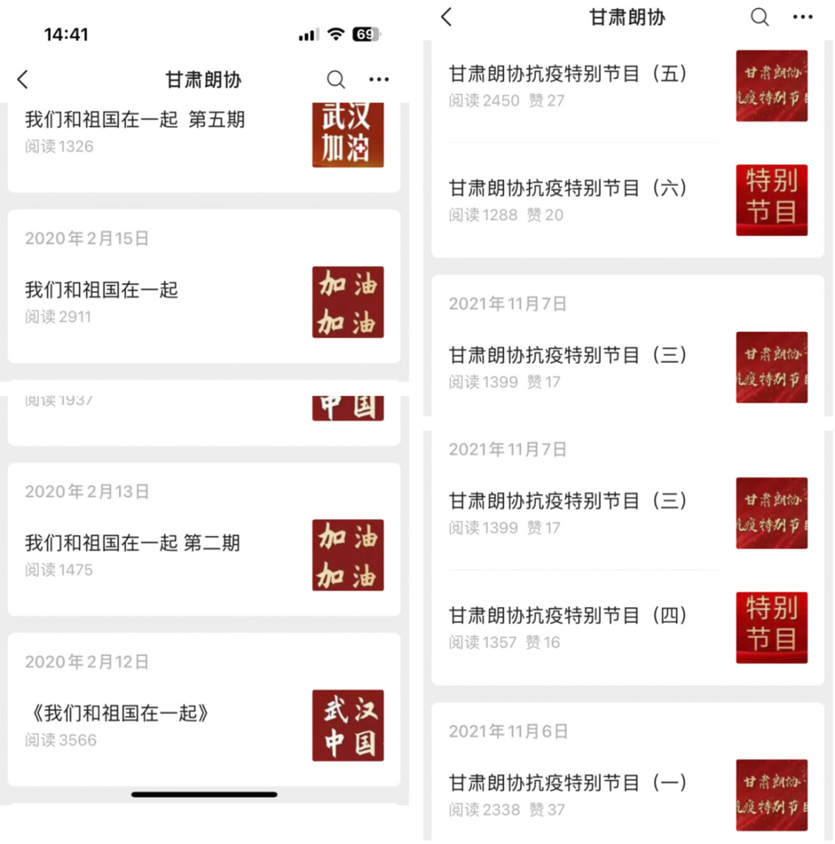 同一时期甘肃朗协还开设的《甘肃朗协抗疫特别节目》共刊发8期、33首抗疫作品。