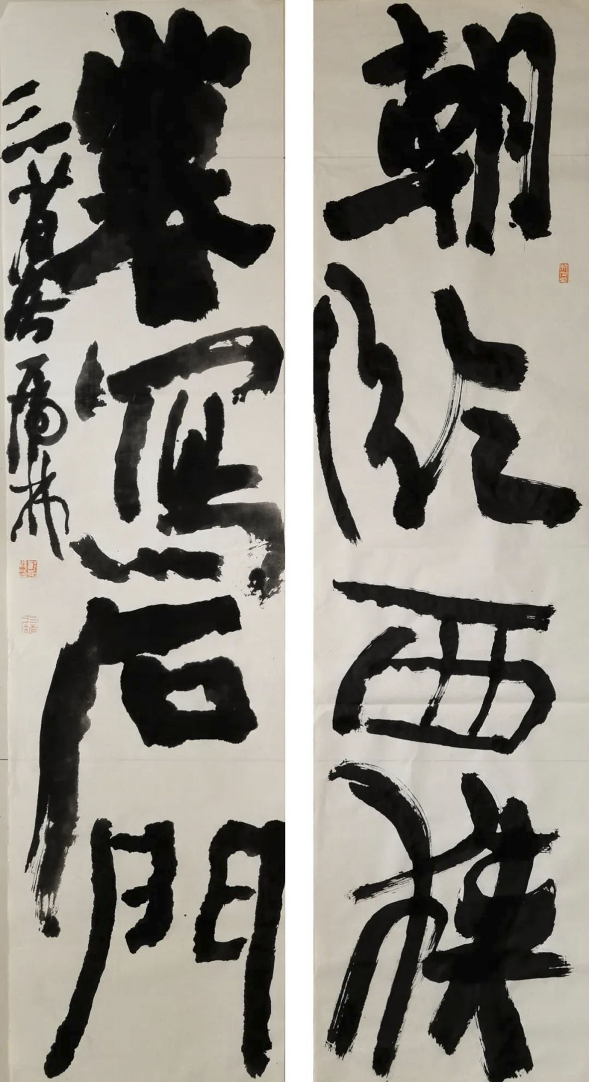 虎林的探索,我亦想起徐渭。袁宏道偶于友人陶望龄家翻到徐渭诗文,"恶楮毛书,烟煤败黑,微有字形"。但在灯下一读,惊问此人是今人?还是古人?"读复叫,叫复读",认为徐渭"一扫近代芜秽之气"。除开虎林的带有较多传统美感的直接古人心魂的书法,这些新的探索,并不是虎林一时的心血来潮,而可能是书家将持久地潜心的艺术探索。是要经由这样的探索,寻找可以安妥自己艺术内心的途径,寻找书法本身的奥秘;而进一步说,则是要寻找到书法这种古老的艺术形式与当下世界的一种关系。