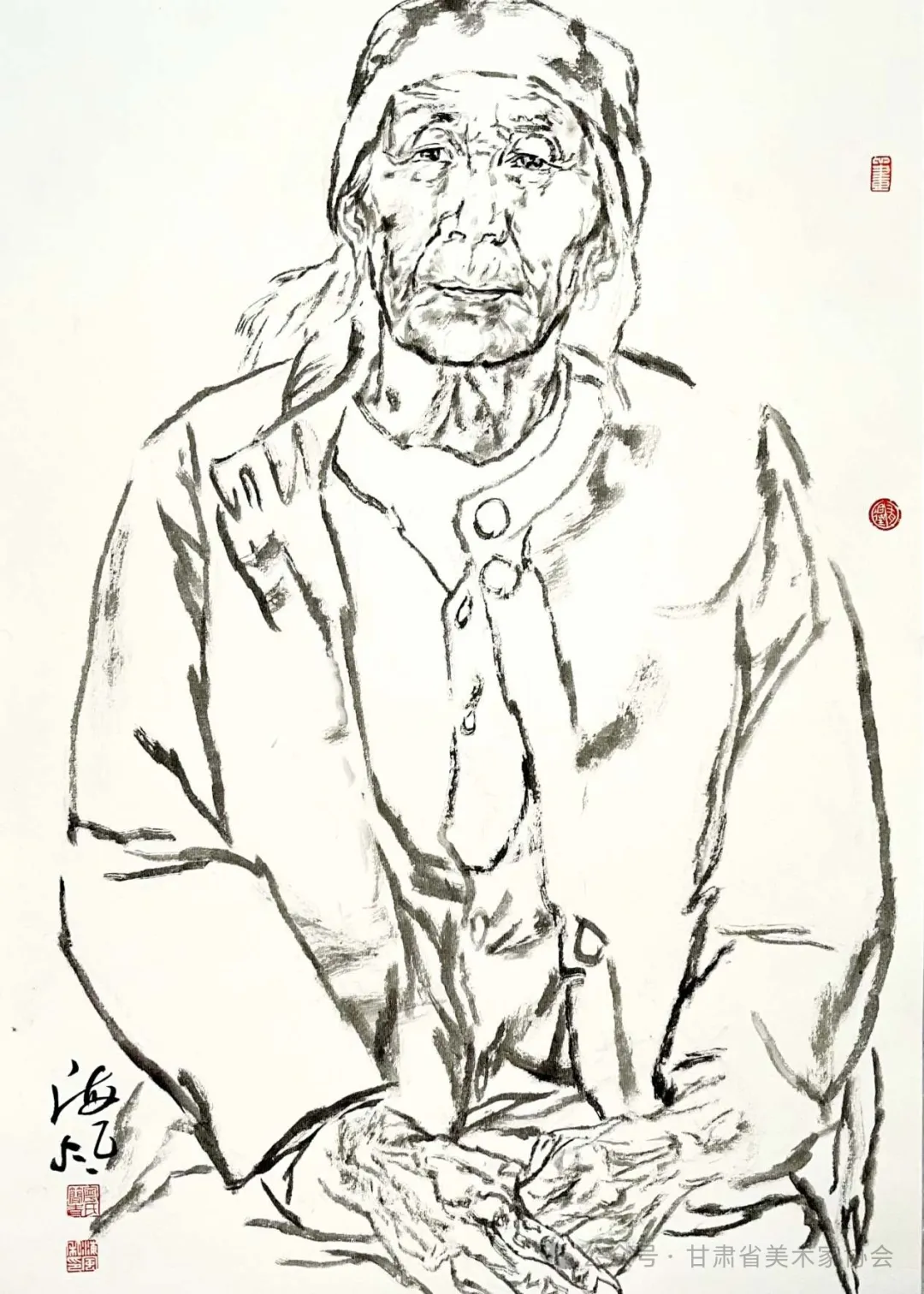《老人像写生》中国画 45×65cm 2023年