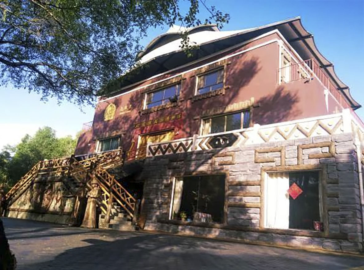 村寨由肃南县尧熬尔原生态文化传承有限责任公司投资639万元建成,总面积约3.8万平方米,其中主体建筑是一栋极具民族特色的三层楼体,一楼是裕固族传统民族餐饮接待和研学授课;二楼是裕固族地区首家私家文博——裕固民俗博物馆;三楼是会议中心和传承人交流区。