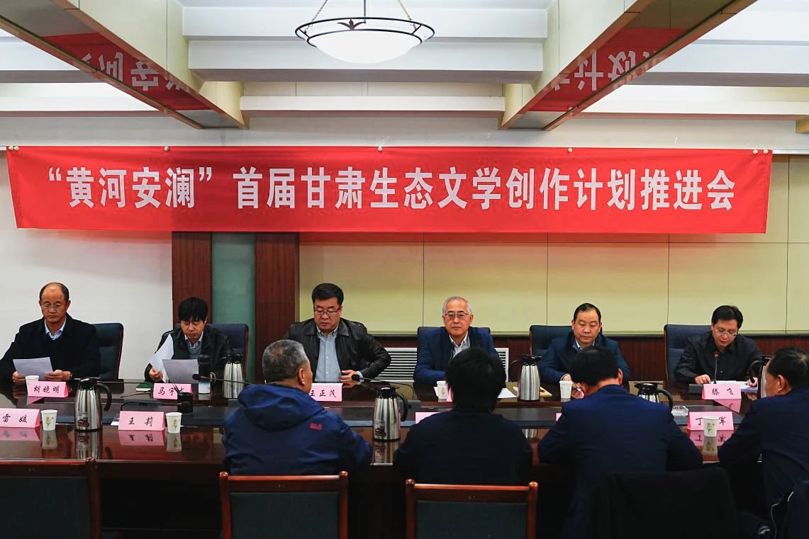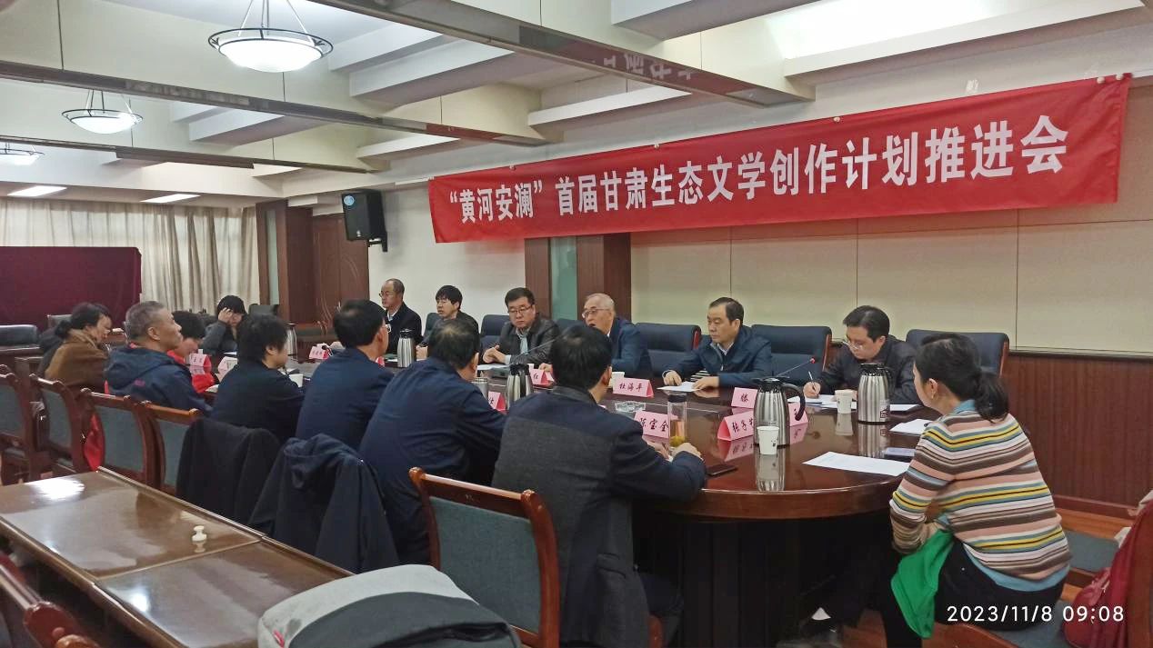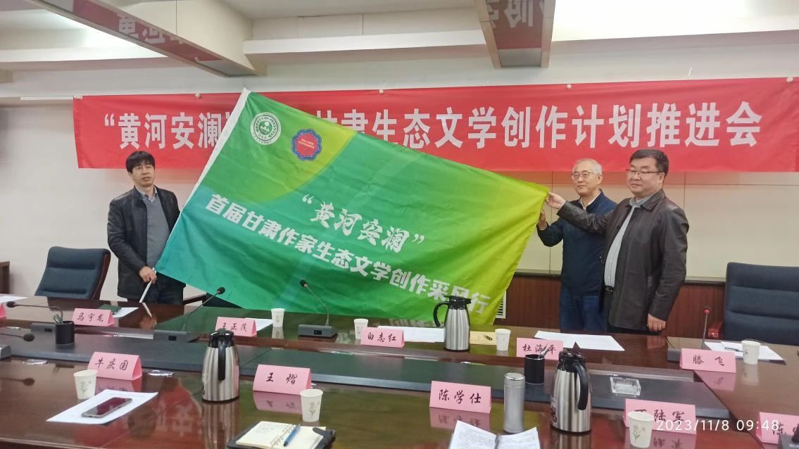 2023年11月8日,“黄河安澜”——首届甘肃生态文学创作计划推进会在兰州召开,省生态环境厅党组成员、副厅长白志红,省文联党组成员、副主席王正茂出席会议并讲话,省文联副主席马宇龙、省生态环境厅宣教处处长杜海平、省生态环境宣传教育中心主任胡晓明、《甘肃日报》社文艺部副主任王莉、《甘肃日报》社记者雷媛,以及甘肃生态文学创作计划首批采访团成员参加,会议由省作协常务副主席滕飞主持。