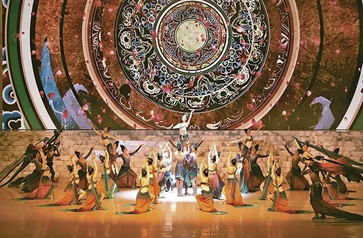 党的十八大以来,广大文艺工作者与党同心同德、与人民同向同行,围绕中心、服务大局,在文艺创作、文艺活动、文艺惠民等方面作出积极贡献、取得丰硕成果。图为2022年9月1日第十三届中国艺术节开幕式上,演员表演芭蕾《敦煌·飞天》。新华社记者陈钟昊/摄