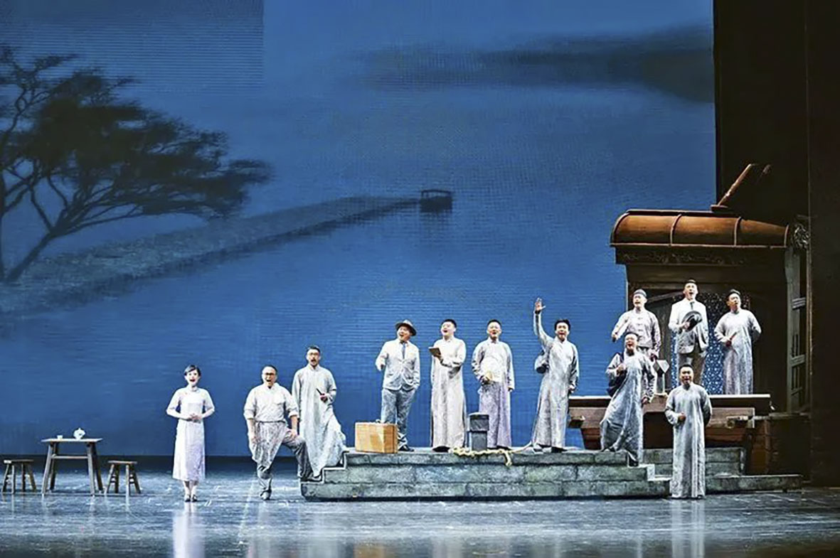 党的十八大以来,广大文艺工作者紧紧围绕中华民族伟大复兴时代主题开展文艺创作,推出一大批讴歌党、讴歌祖国、讴歌人民、讴歌英雄的精品力作。图为浙江演艺集团、浙江交响乐团、浙江音乐学院等联合演出的歌剧《红船》。人民画报社供图刘海栋/摄
