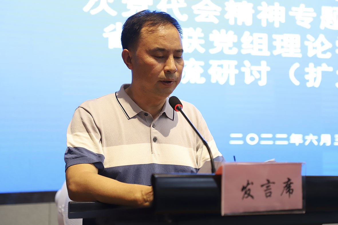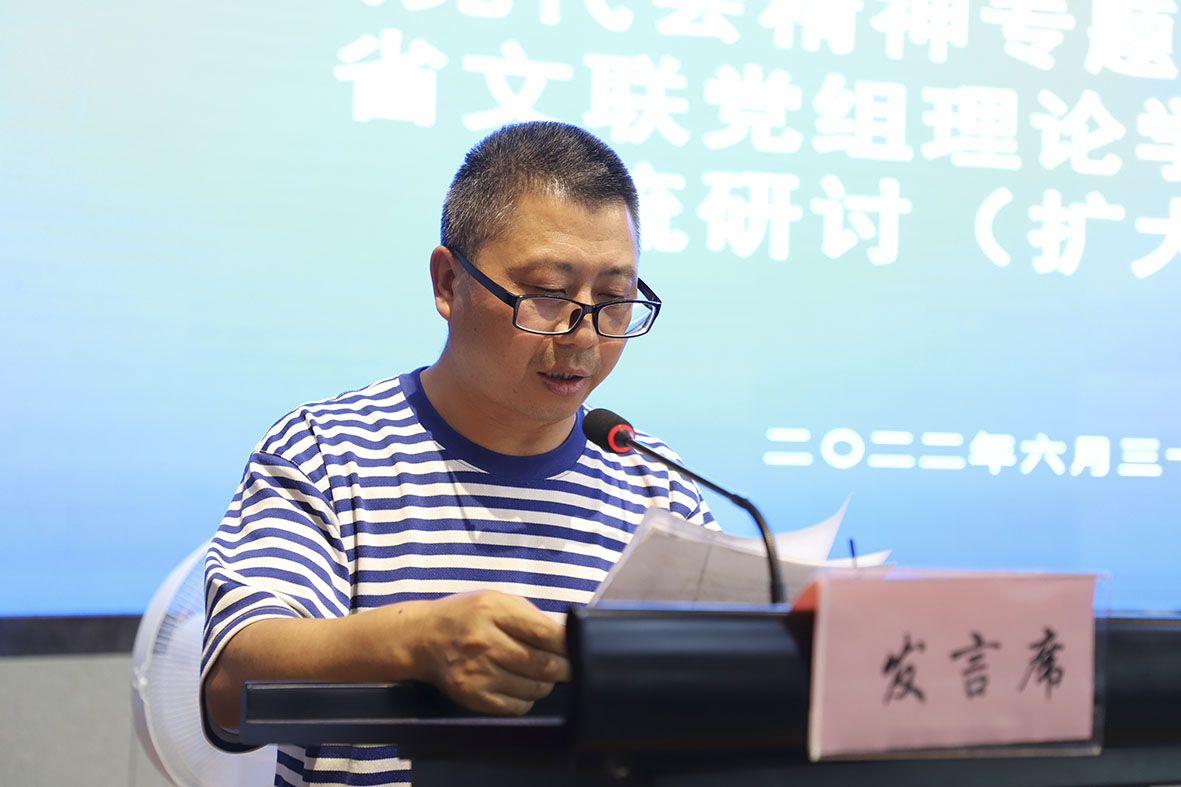 下午,围绕学习贯彻省第十四次党代会精神,以“坚定文化自信,推进守正创新,开拓进取、砥砺前行,为全面建设社会主义现代化幸福美好新甘肃而努力奋斗”为主题,组织开展省文联党组理论学习中心组交流研讨(扩大)会议。省文联党组成员、副主席马青山、省音协主席左霞、省剧协副主席马少敏、中铁二十一局文联副主席张兰忠、新艺联执委会副秘书长黎明、甘肃改琴书法教育奖励基金会理事尚再国等6名同志进行了交流发言。